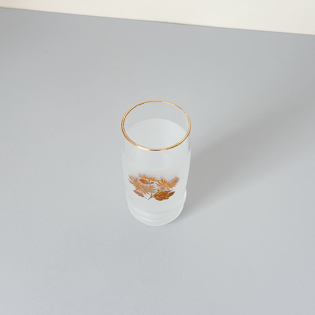 金の口元、少し下からフロストになっていて、花のプリントが上品に見えます。