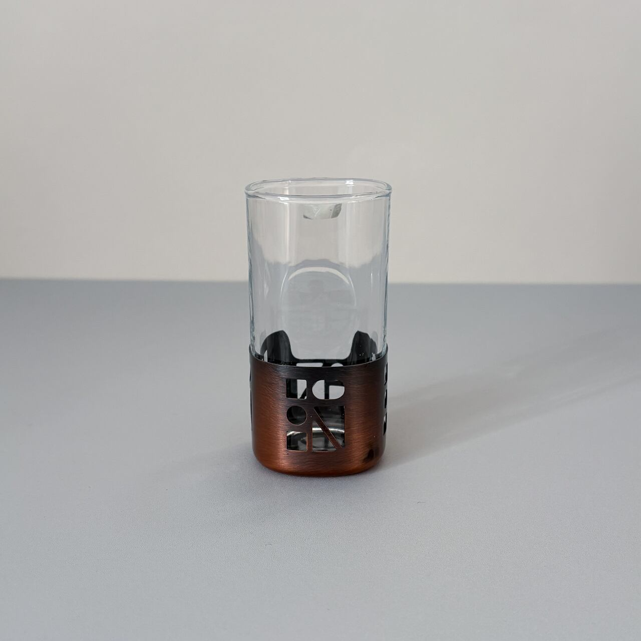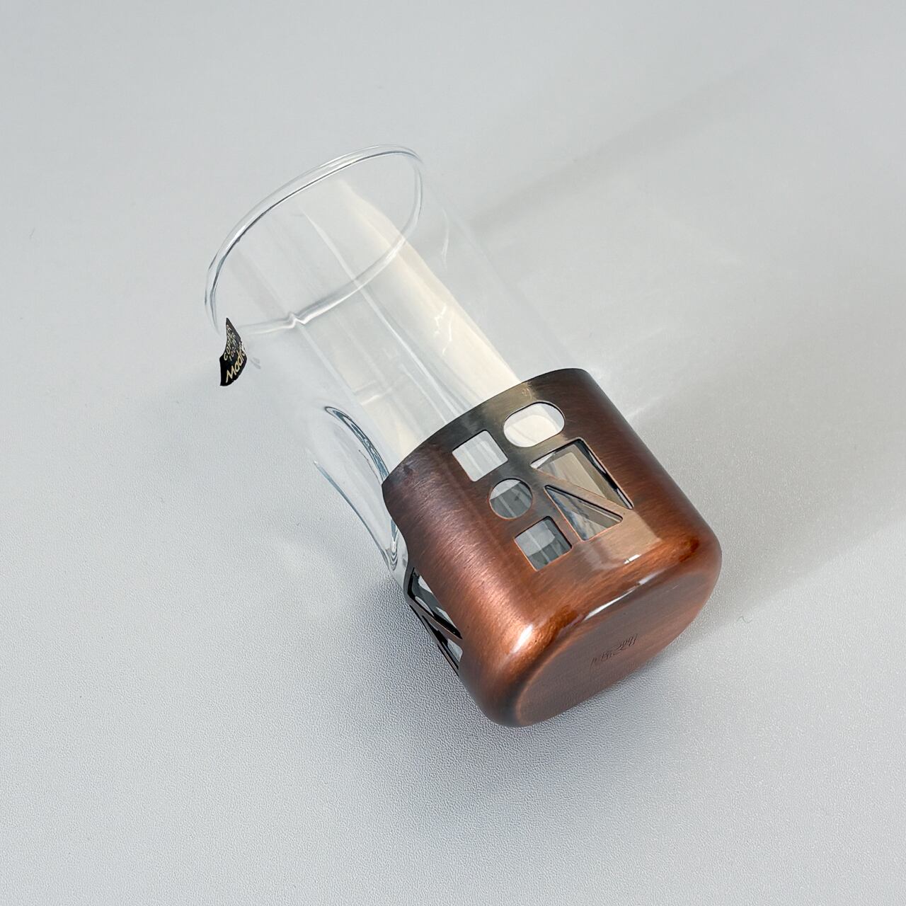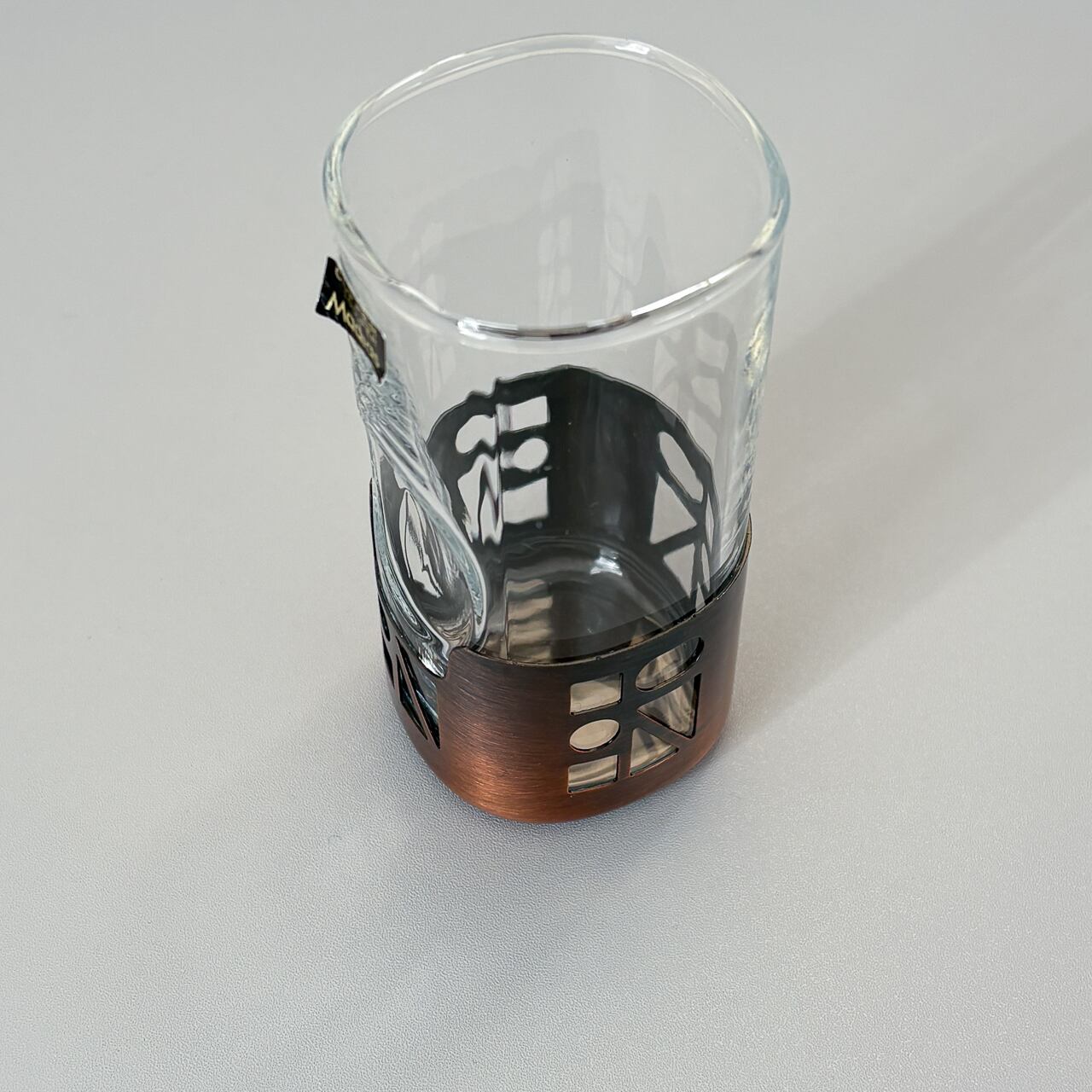 耐食性が高く錆びにくい純銅の、装飾的なホルダー付きグラスです。