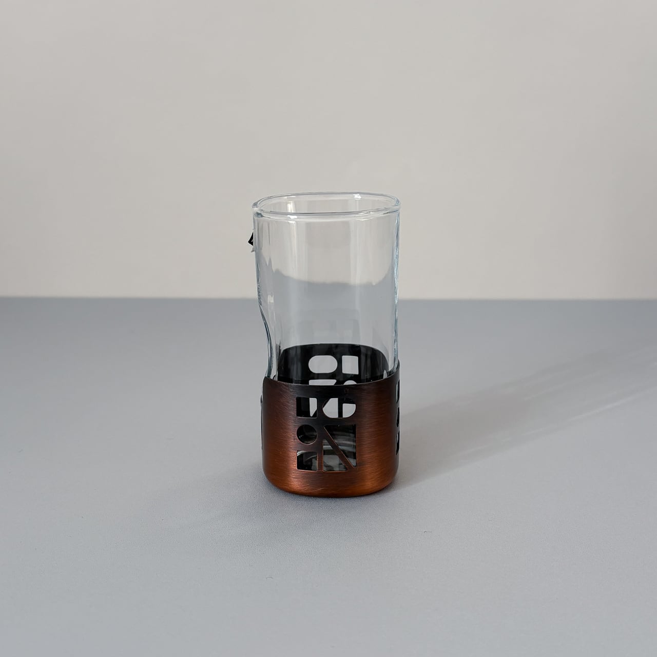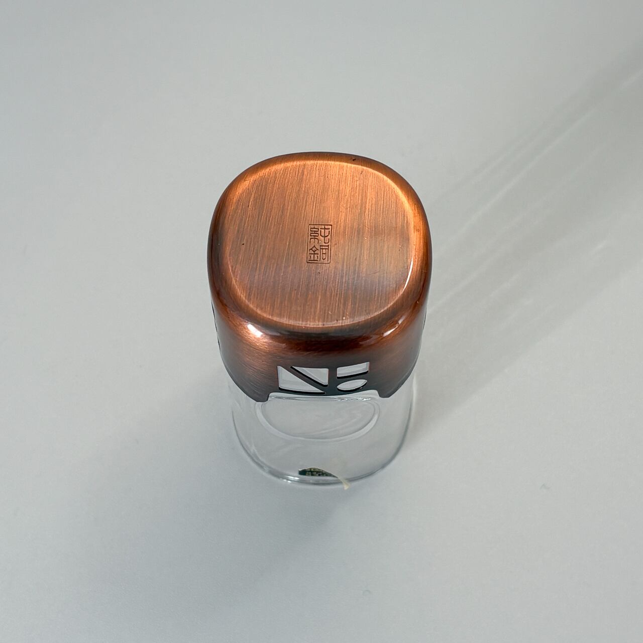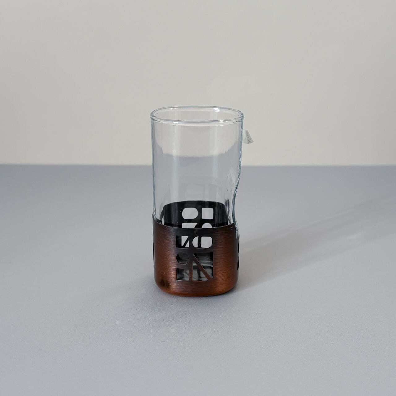 耐食性が高く錆びにくい純銅の、装飾的なホルダー付きグラスです。