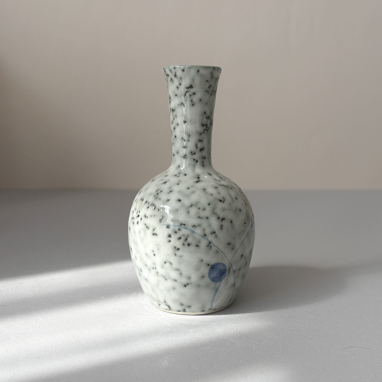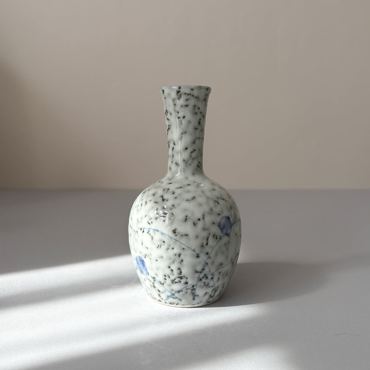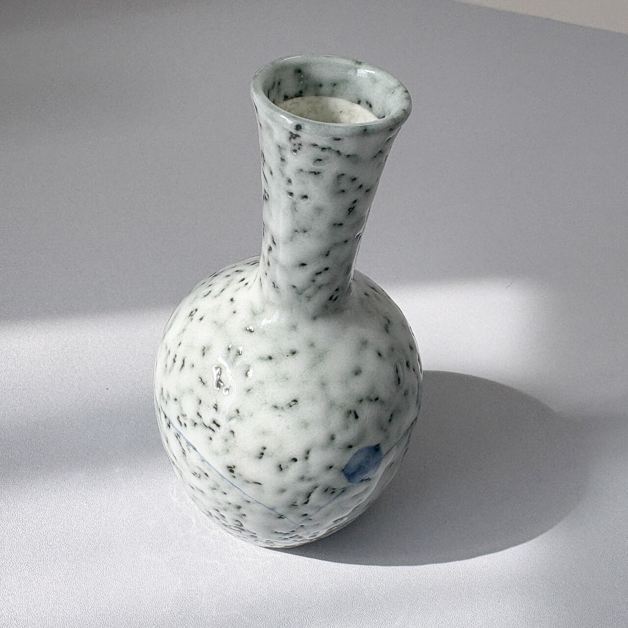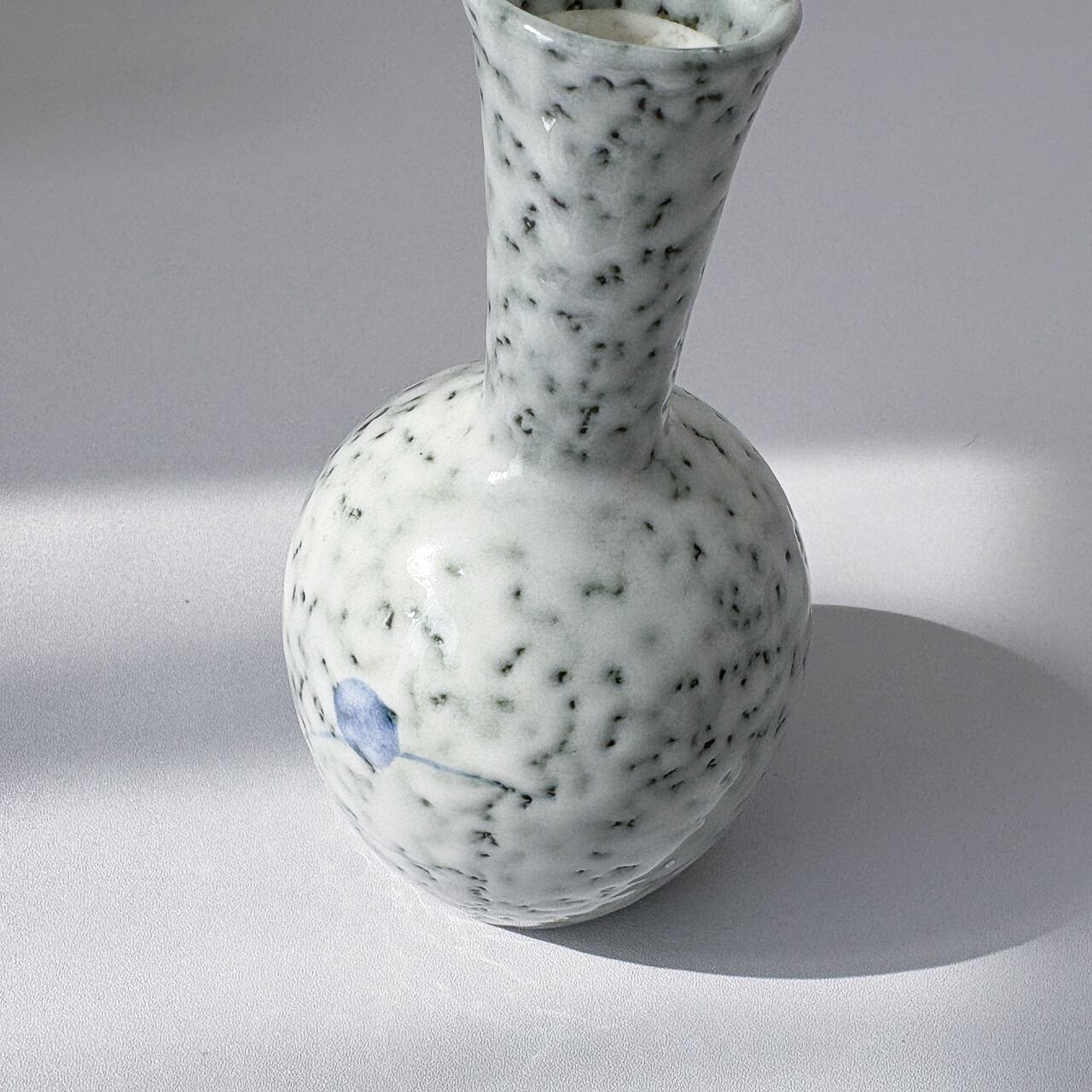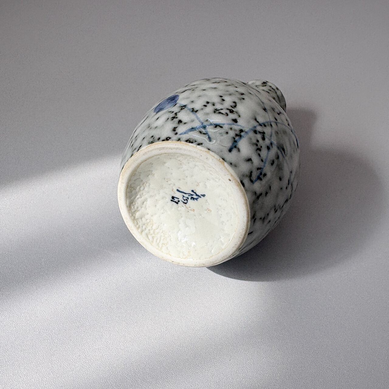 釉薬からまだらに覗く深緑と、薄青のささやかな絵付け。