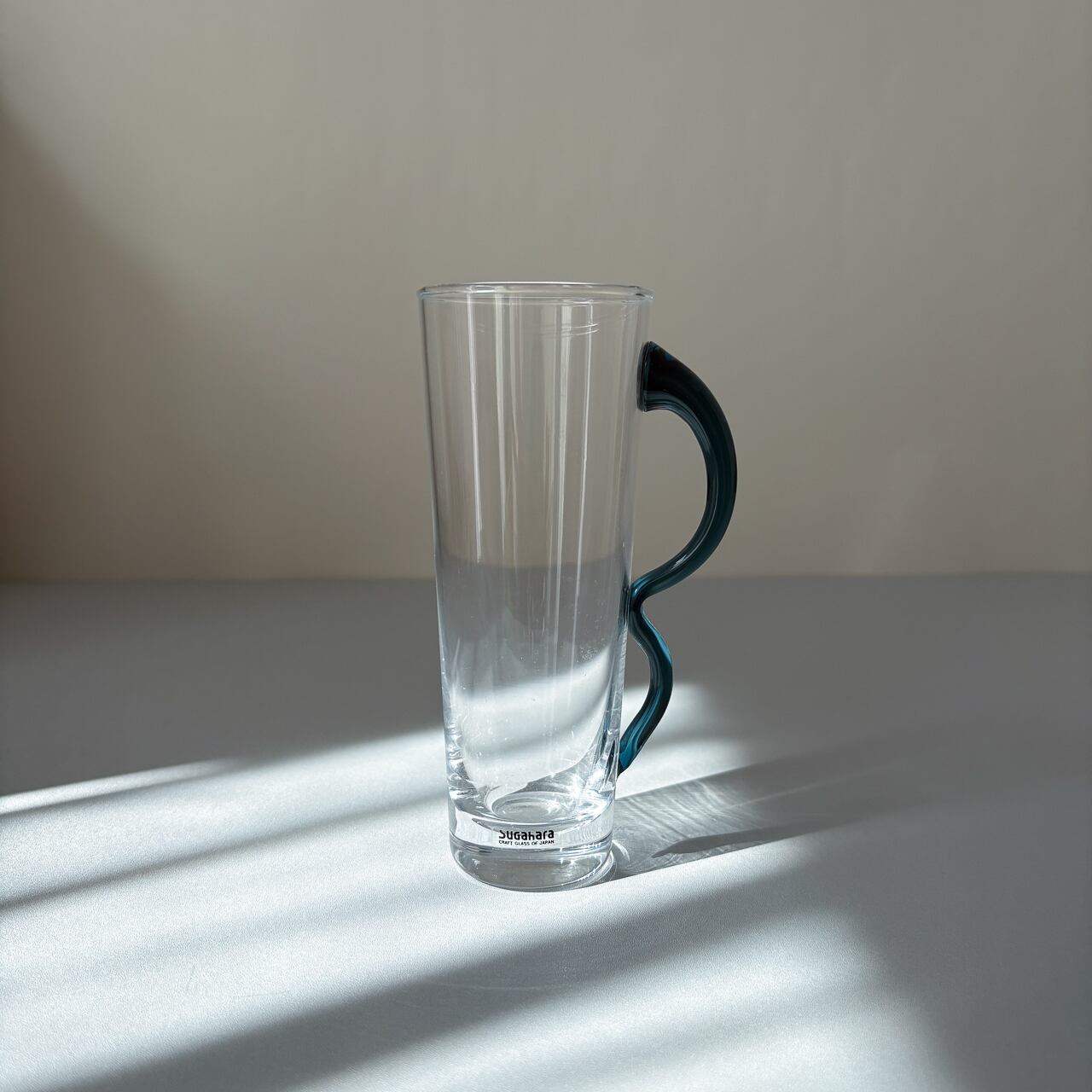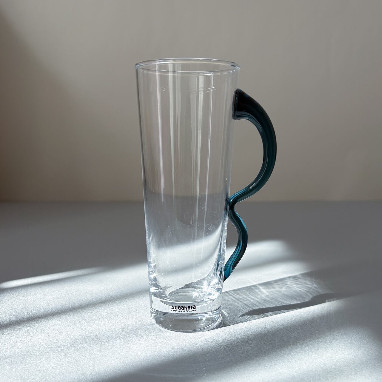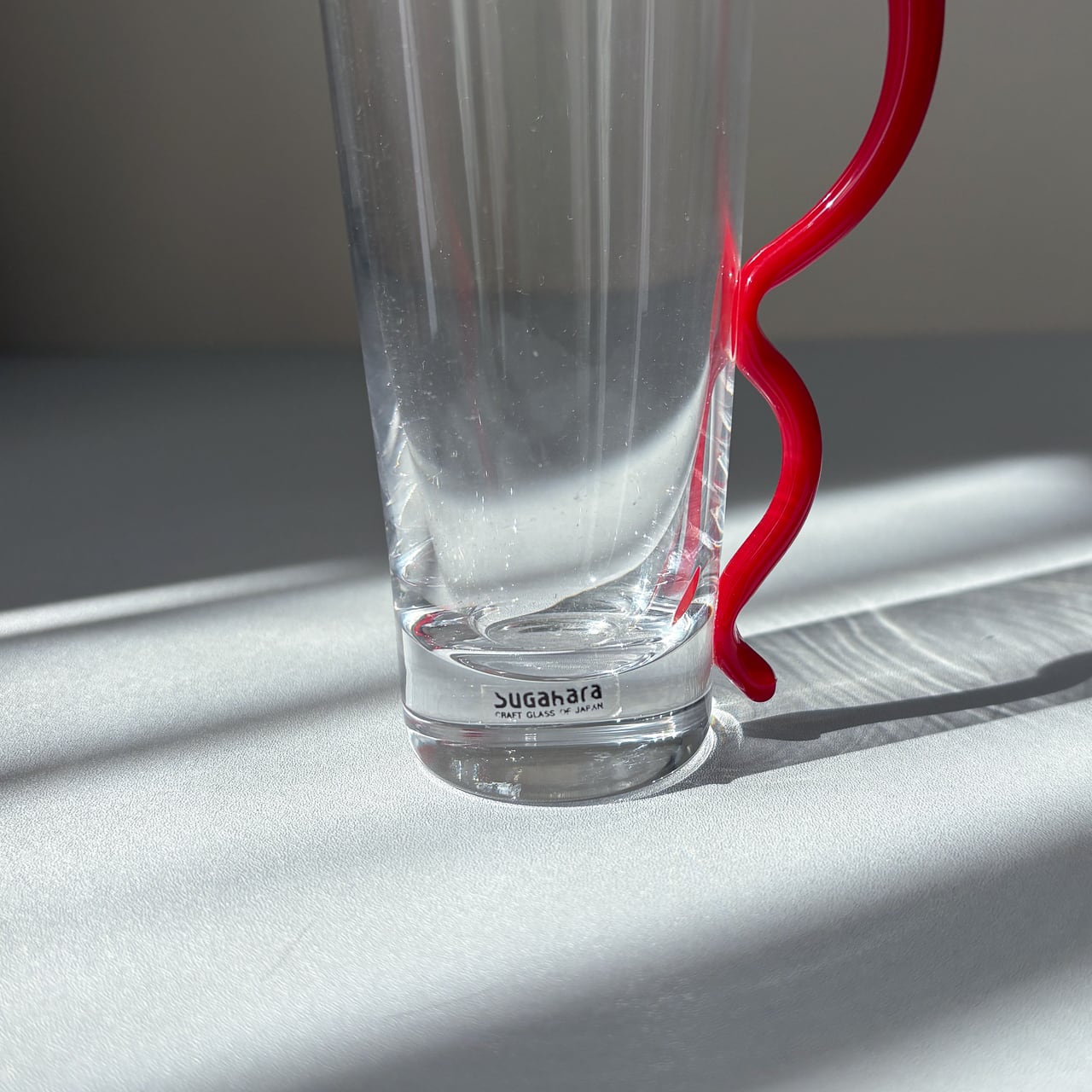 くねくねとした取手が特徴的な、スガハラのグラスです。