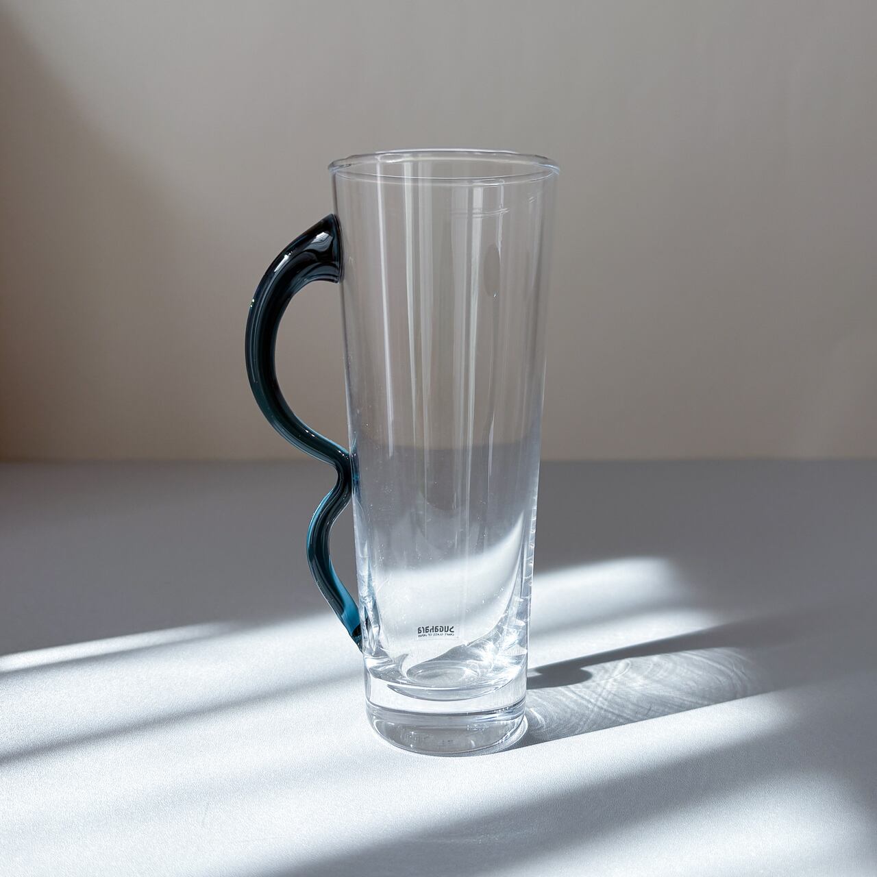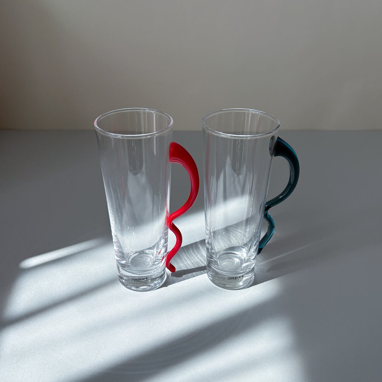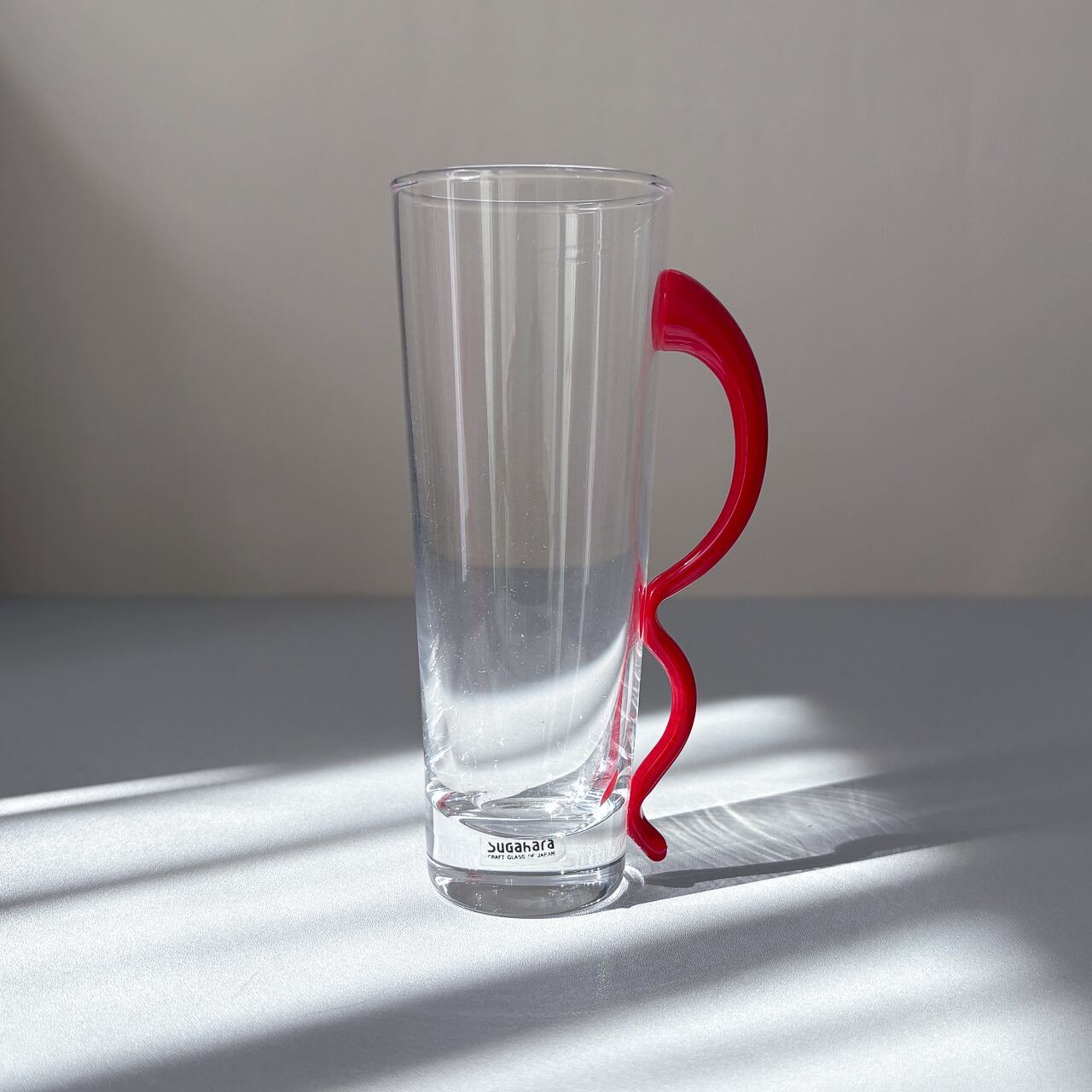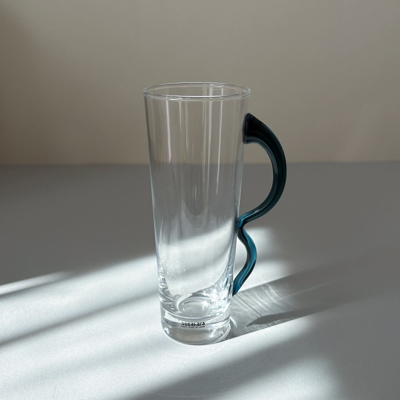 くねくねとした取手が特徴的な、スガハラのグラスです。