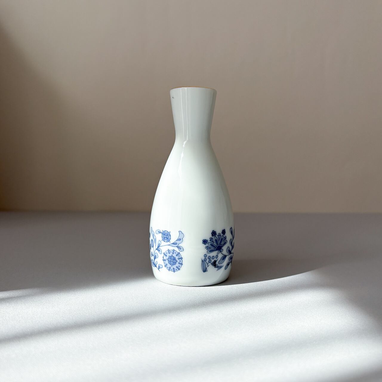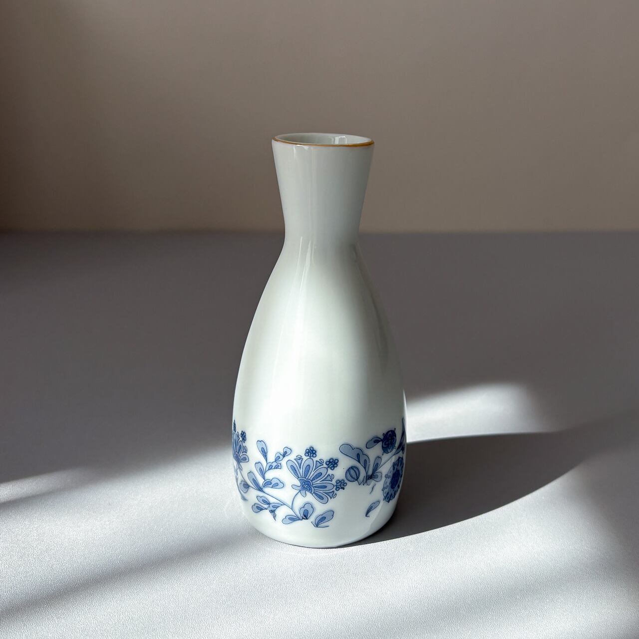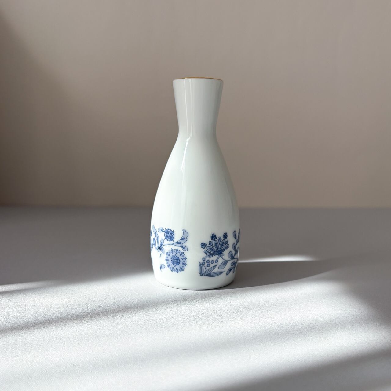 花のモダンなイラストがプリントされた、百選会の徳利です。