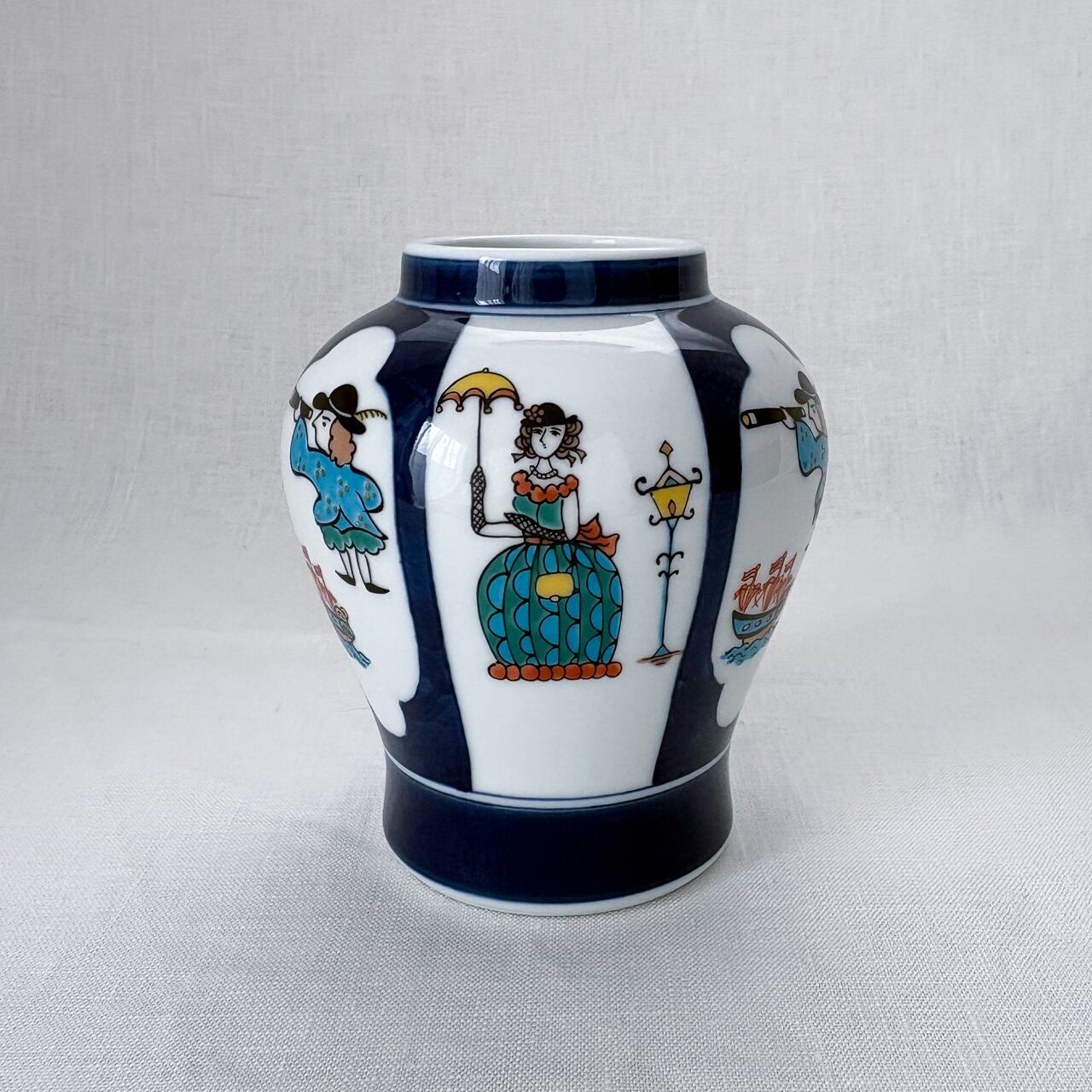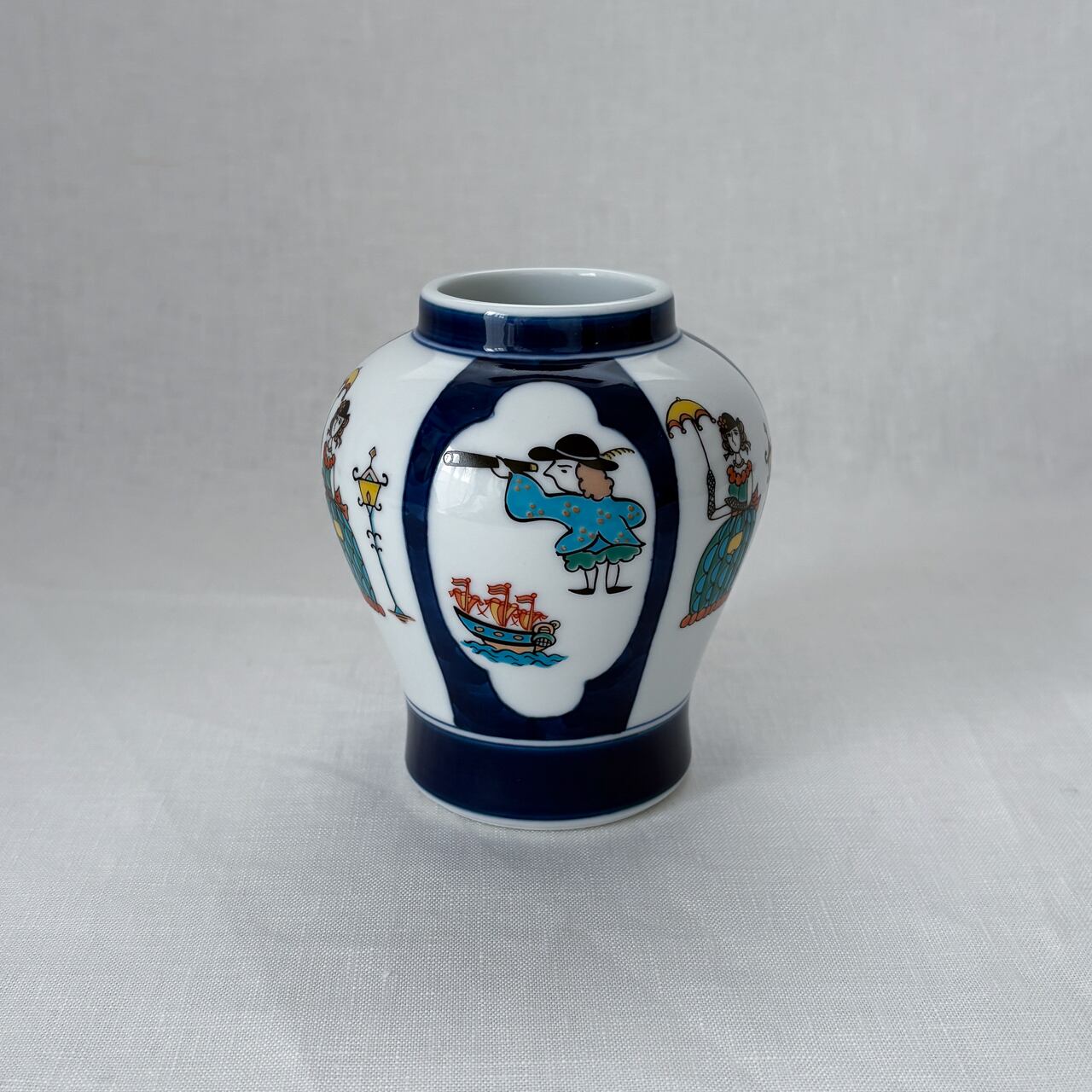 洒落っ気のある偉人さんが描かれた、有田焼の花瓶です。