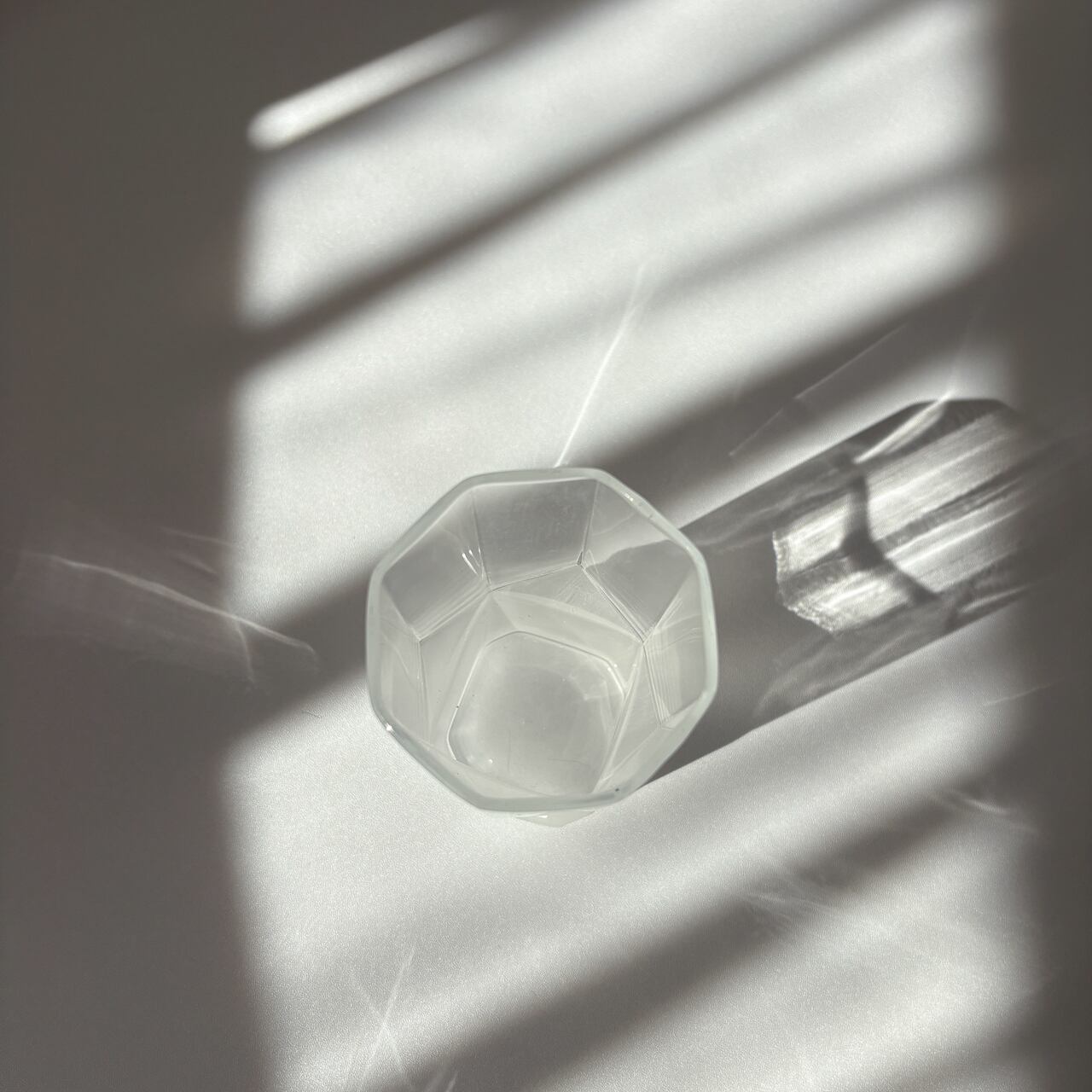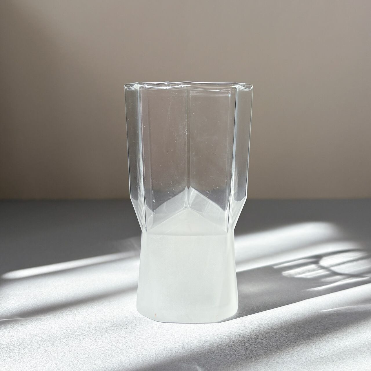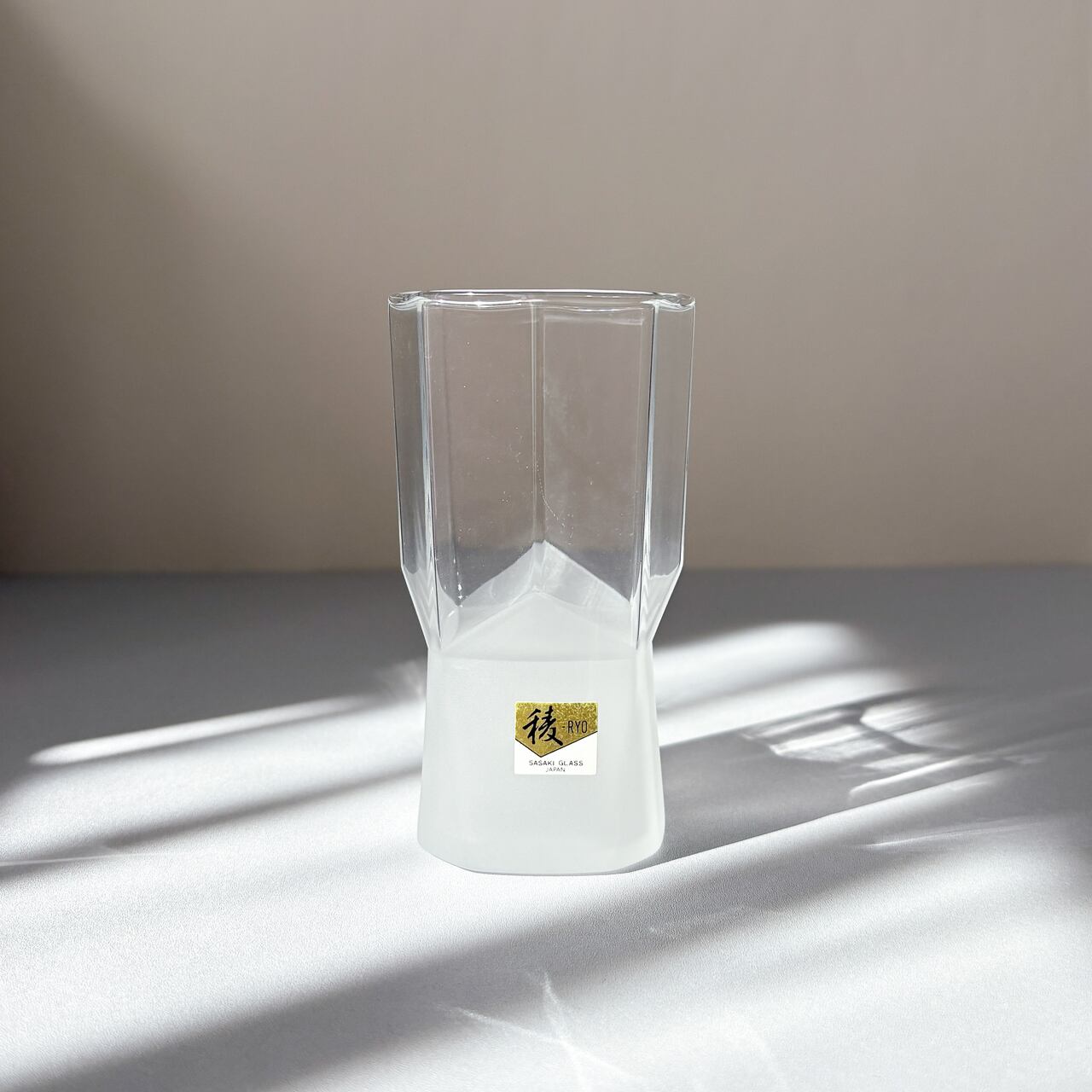 険しい山稜を思わせる直線と、フロストの涼しさを感じるグラスです。